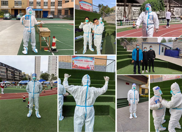志愿者们严格按照疫情防控工作要求和社区工作安排,规范执行分配的各项疫情防控工作。从5月10日起,他们脱下了实验服,穿起了“大白”服,换了一身衣服,用另一种身份,履行起了疫情防控的责任。每天早晨6时前,志愿者们会分别早早到达新宁路小学和锦程嘉苑小区的核酸检测点,积极帮助工作人员搭建帐篷、布置检测台和场地、进行现场消杀等,提前做好现场检测的准备工作。采样工作开始后,又继续进行居民引导、检测秩序维持、现场防控提醒等工作。