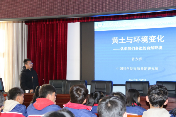 民建青海盐湖所支委曾方明以《黄土与环境变化》为主题,简要介绍了黄土的分布、成因、物质来源、地层结构和年代及黄土在重建过去环境变化方面所取得的一些重要成果,激发了同学们对于认识自然环境和积极探索未知世界的动力。