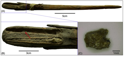 胶结材料的应用可追溯至旧石器时代,它催生自复合工具,又有效地促进了复合工具的发展,其重要性自不待言。然而,胶结材料的主要组分为有机物,经长期埋藏,常常降解殆尽,由此不难理解,其科技分析始终是个世界性难题。目前,国内的相关研究仅涉及历史时期彩绘颜料层的胶结材料,且不太关注胶结材料的精确生物来源。