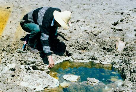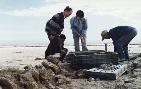 工作在湖边,却无淡水用,因为湖水都是饱和的盐卤水。淡水十分珍贵,人人惜水如金。为了节约用水,大家一连好几个月不洗脸、不刷牙,也不刷锅洗碗,甚至汽车水箱里的存水也成了他们的饮用水。溅在衣裤上的卤水“滴水成盐”,硬巴巴的像干牛皮,时间一长裤子就从膝盖处折断。湖区日温差可达20度,白天酷热难熬,夜晚寒冷无比。他和一位二十多岁的队员进行湖区的草测工作,他们在没膝深的沼泽地里每走一步都十分艰难。为了赶进度,他俩就在野外露宿不回营地,天黑了,测到哪里就在哪里和衣而眠。就这样奋战了五个多月,完成了东台吉乃尔湖区野外考察的预定工作。