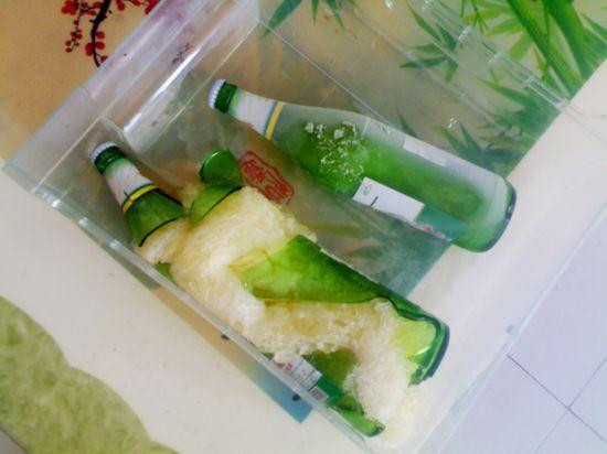 同样类似的还有啤酒。不少网友反映,前一天晚上放在冰箱冷冻室的啤酒,第二天竟然炸开了。啤酒是一种发酵型饮料酒,瓶内含有充分的二氧化碳,消费者启瓶方法、储藏和运输方式不当都有发生啤酒瓶爆炸的危险。