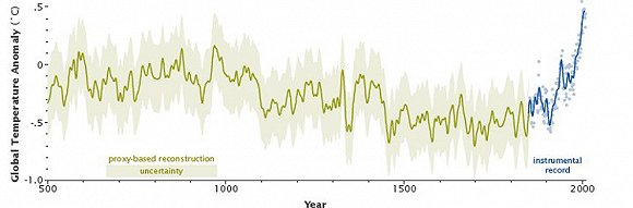 “在过去的30年中我们已经进入到了超常的区域,”NASA戈达德(Goddard)太空研究所主任加文·施密特(Gavin Schmidt)说,“在近千年内,这种变化是从未有过的。在(气温)的变化曲线上,20世纪也没有哪个时间段出现过这种趋势。”