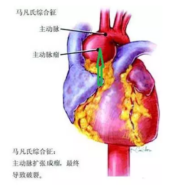心血管系统受累是最危险的病变。约80%的患者伴有先天性血管畸形,常见主动脉扩张及心脏瓣膜关闭不全。以及可合并各种心律失常,如传导阻滞、房扑、房颤等。患者升主动脉瘤样扩张,易出现主动脉瘤破裂出血,严重时可造成猝死,这是急性的,也是导致死亡的主要原因。