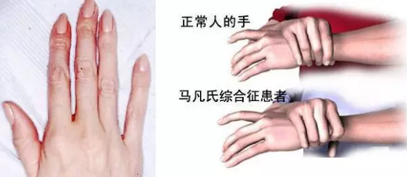 耶鲁大学约翰·埃尔弗特里亚德斯教授曾提出,在手掌平放的情况下,看手指是不是超出了手掌的长度,或者当手指交叉放在手掌上时,指甲根部超过手掌边缘很多,那就可能是马凡氏综合征或另一种相似综合征的体征了。