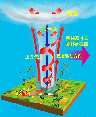 龙卷风是一种强烈的、小范围的空气涡旋,是在强烈不稳定天气条件下,由空气强烈对流运动产生的,常与雷暴、冰雹和暴雨等强对流天气系统“结伴而行”。作为强对流天气的一种,龙卷风可以说是对流风暴产生的最猛烈的天气现象。