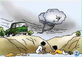 3.应迅速朝龙卷风移动方向的垂直方向跑动,伏于低洼地面、沟渠等,但要远离大树、电线杆、广告牌、围墙等,以免被砸、被压或发生触电事故。