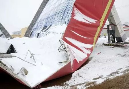 再具体一点说就是,100平方米的平面屋顶如果积雪膝盖那么深,就会承受超过3-5吨的重压,这就相当于在屋顶上站了20多个200公斤左右的胖子,其重量可想而知!