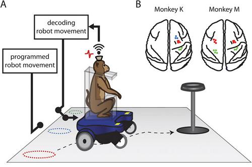 研究人员首先让猴子坐在轮椅上,并观察猴子驱使轮椅向一个装满葡萄的碗移动。在这一过程中,他们记录下猴子的脑电波活动情况,再利用电脑系统将脑电波转化为可操控机械轮椅的数字指令。