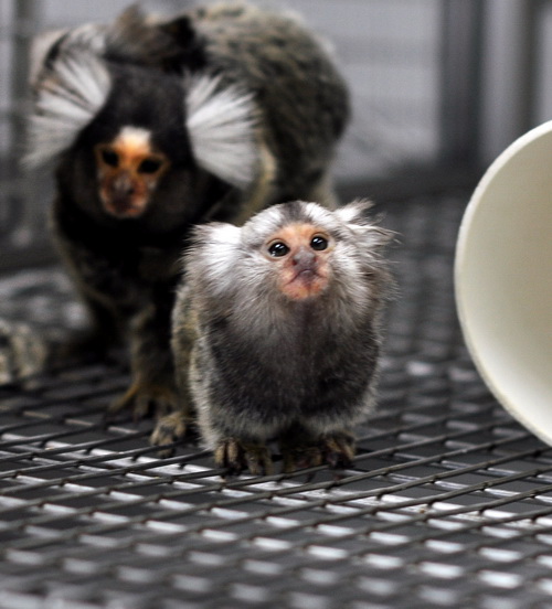 2009年,日本科学家培育出了一种转基因绒猴。这些转基因绒猴的细胞里多了一种绿色荧光蛋白,因此它们在特定荧光的照射下会变成绿色。更了不起的是,它们生下的狨猴宝宝也带有这种绿色荧光蛋白。这是科学家第一次获得能够成功传代的转基因猴呢!目前,世界各地的实验室还在尝试培育更多的转基因狨猴,它们将为我们了解人类大脑的奥秘提供重要帮助。