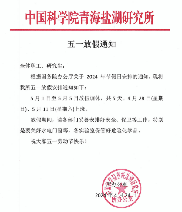 五一放假通知