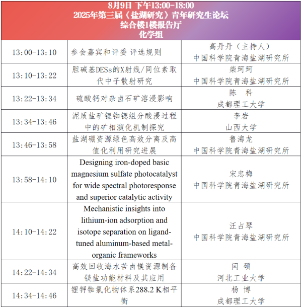 在建所60周年之际,为持续深入学习贯彻落实习近平总书记关于努力抢占科技制高点、加快建设世界级盐湖产业基地重要指示精神,探讨在新时期、新形势、新挑战下科技支撑盐湖产业高质量发展路径,践行使命担当,赋能新质生产力,8月7-9日,青海盐湖所将组织召开“盐湖资源开发利用与生态保护暨中国科学院青海盐湖研究所建所60周年学术研讨会”,诚邀国内外知名专家学者,共聚一堂,交流盐湖资源开发与生态保护科技发展前沿;敬请各级领导、社会各界朋友,拨冗莅临,共谋盐湖科技事业高质量发展大计;期盼海内外校友及离退休老同志久别重聚,忆往昔峥嵘岁月,展盐湖“国家队”使命担当!