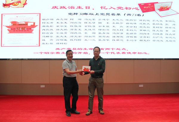 为入党30年以上的党员代表颁发政治生日珍藏卡