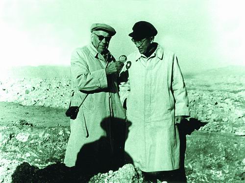 1958年12月,柳大纲(右)与苏联科学家德鲁斯·利托夫斯基在柴达木盐湖。
