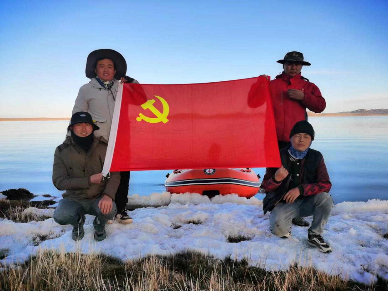 角木茶卡考察的最终完成让大家都长舒了一口气,同时也都意识到了科考的艰难与危险。尽管如此,在临时党支部的坚强领导和组织下,大家坚定信念,不畏艰险,克服困难,很好地完成了这一阶段的工作任务。然而,这只是羌塘无人区试验区范围中的一个小盐湖,下一步还要进入更深处的羌塘无人区核心区开展考察工作。未来又会是怎样的“惊喜”等着我们呢?一切都还是未知。但是,大家相信,无论后面碰到什么情况,鲜艳的党旗会激励我们勇往直前!