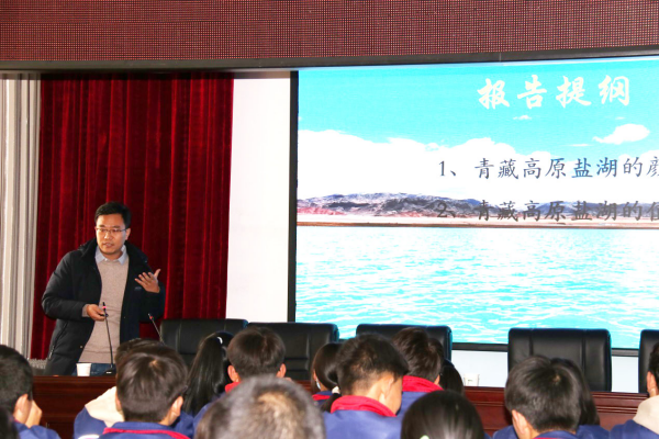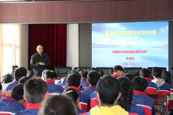 活动中,九三学社青海盐湖所委员会主委朱发岩以《青海盐湖资源与开发利用》为主题,形象生动地讲述了“什么是盐湖”“盐湖在哪里”“盐湖资源开发过程”等,使同学们对青海的特色优势盐湖资源有了初步认识;同时还结合生活过程中 “大脖子病”“抢盐大战”等实例,向大家解释了盐的重要性和科学用盐的必要性。朱发岩还结合自己在南门峡中学的学习经历,鼓励同学们好好学习,为将来服务国家和奉献社会掌握知识、打牢基础。