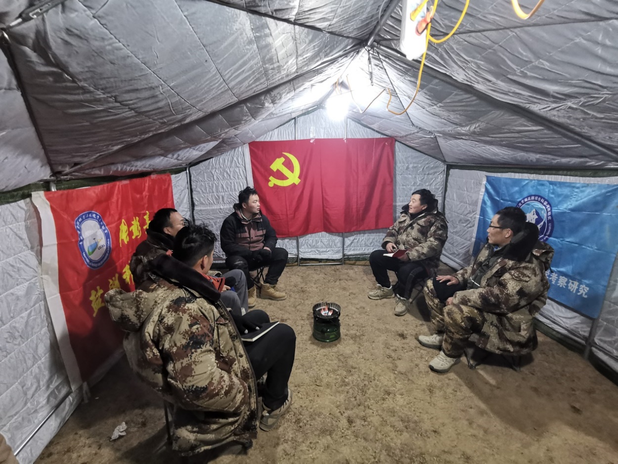 突击队出发前,党委联系人王建萍和支部书记张西营,叮嘱队员们安全第一,要是身体不适,坚持不了,就回来。但工作期间无论条件多么艰苦,队员身体多么疲乏,高反多么严重,大家都没有打退堂鼓,因为,大家知道“进来一趟太不容易了,一定要把计划的样品全部采到!”这也是每个队员心中的默契。这也是支撑大家圆满完成历次科考的信念!
