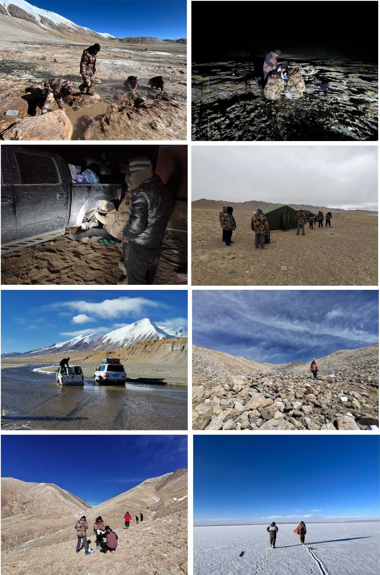 新年伊始,经过详细的规划及准备,由青海盐湖所盐湖地质与环境实验室李庆宽和秦占杰副研究员、支部宣传委员(兼纪委)带领张彭熹盐湖科考突击队中的4名队员于2024年1月4日深入可可西里无人区开始了新年的第一次盐湖科考调查,工作平均海拔4800多米,总行程6000多公里,紧锣密鼓24天对可可西里全境20个盐湖的卤水、补给河流、地下水、热泉群、冰川、岩石地层等展开系统调查,完成计划目标,采集了不同水体、岩石、沉积物等样品300余件,发现特殊地质现象多处,为后续的科学研究提供了重要的一手资料,为青藏高原不同区域(柴达木盆地、可可西里盆地、羌塘盆地等)盐湖的战略资源元素成矿机理综合对比研究提供了重要的保障。