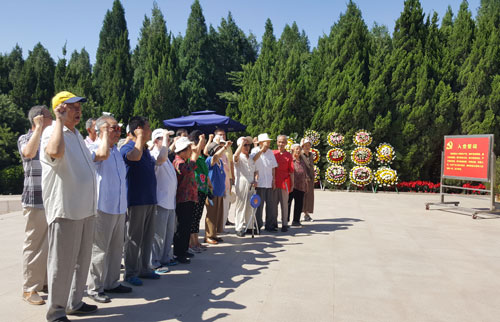在庄重肃穆的习仲勋陵园,老党员们怀着十分崇敬的心情环绕习仲勋同志雕像进行瞻仰,在瞻仰习仲勋同志雕像过程中大家都为习仲勋同志“天天战斗,天天快乐;奋斗一生,快乐一生”的精神所振奋,从心里缅怀着这位从渭北大地上走出的优秀的共产党员。在雕像前,全体党员庄重的举起右拳重温了入党誓词,回顾每位党员入党目的和动机,确立为共产主义事业奋斗终身的信念。瞻仰完习仲勋同志雕像,在讲解员的引导下,又来到苍松翠柏掩映下的陕西省爱国主义教育基地--习仲勋陵园的陈列馆。在陈列馆里,同志们看着一幅幅感人的照片,聆听了讲解员对习仲勋同志革命历程的介绍,回顾了他为新中国的建立、建设和改革开放呕心沥血的卓越功勋。