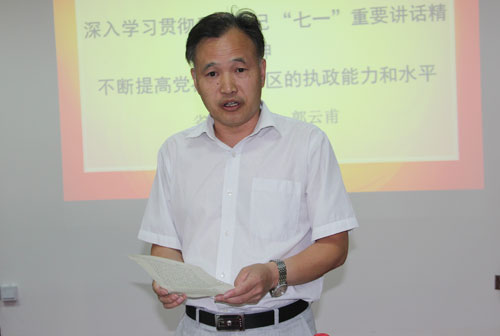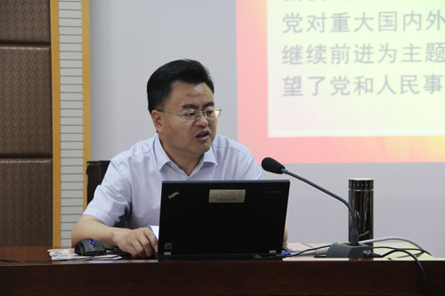 随后,青海省省委讲师团团长郭云甫教授作了题为“深入学习贯彻习近平总书记‘七一’重要讲话精神,不断提高党在民族地区的执政能力和水平”的专题报告。他从“充分认识中国共产党95年不懈奋斗的光辉历程和牢牢把握‘不忘初心、继续前进’八个方面的要求”进行了解读,全面深刻地了阐述了习近平总书记“七一”重要讲话的精髓,回顾了中国共产党带领全国各族人民不懈奋斗走过的光辉历程和做出的伟大贡献,深刻揭示了近代以来我国社会发展的规律,深刻阐明了我们党的执政理念和执政方略以及对重大国内外问题的原则立场。通过他的分析、解读,使我们充分体会到习近平总书记的讲话高屋建瓴、统揽全局,思想深刻、内涵丰富,是指引我们党奋力推进中国特色社会主义伟大事业和全面推进党的建设新的伟大工程的纲领性文献,为在新的历史起点上团结带领全国各族人民实现“两个一百年”奋斗目标,实现中华民族伟大复兴和中国梦的实现指明了前进方向、提供了根本遵循。