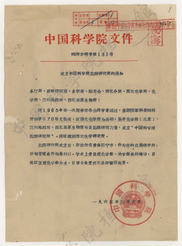 1965年3月6日研究所成立文件