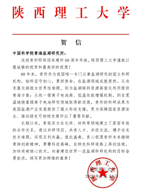 陕西理工大学贺信