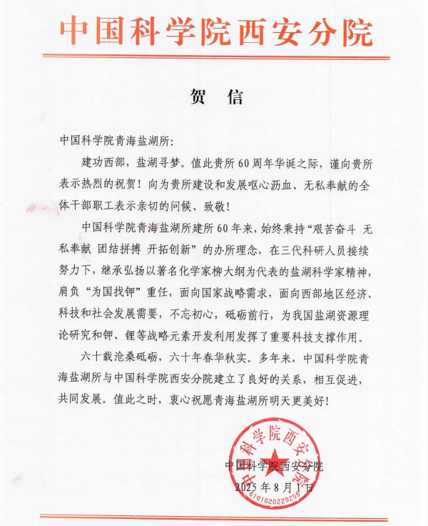 中国科学院西安分院贺信