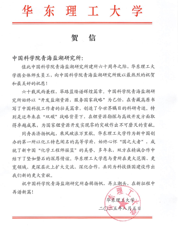 华东理工大学贺信