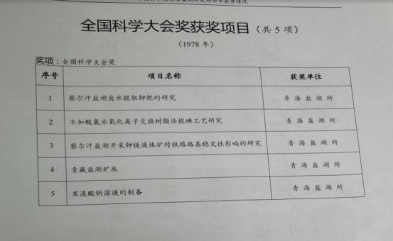 1978年,在北京召开在首次全国科学大会上,青海盐湖所可谓放了卫星,大放光彩。青海盐湖所三项成果获全国科学大会奖,两项合作成果奖,并被评为中国科学院系统唯一科研先进集体,没有第二。大会开幕的当天,青海日报头版全文转载“为开发盐湖资源做好科技储备 ”的文章(刘德江编写)。这是青海省被大会采用的唯一文字材料,并汇入大会文件汇编,青海盐湖所三人参加大会,即所领导张长美代表集体,王绳祖是先进个人,刘德江是工作人员。时任中国科学院的领导也前来看望,表示祝贺和鼓励。