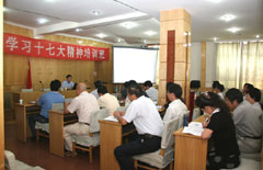 6月11日下午,兰州分院召开副处以上干部学习贯彻党的十七大精神集中轮训工作会议。会议由兰州分院党组书记、副院长王学定同志主持,我所党委书记胡彦明同志带队参加了会议。
