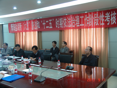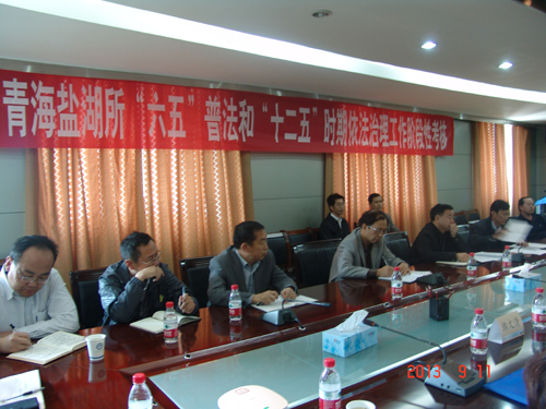 2013年是实施“六五”普法和“十二五”时期依法治理工作的第三年。9月11日,以青海省政府法制办公室副主任贾小煜司为组长的考核组一行5人,对青海盐湖所“六五”普法工作进行了阶段性考核。