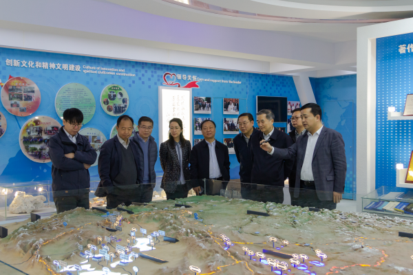 沈政昌一行参观了青海盐湖所科技成果展厅,对青海盐湖所的历史沿革、科研平台、人才队伍、科研成果、重大历史贡献和盐湖资源开发利用研究进展等情况进行了解。