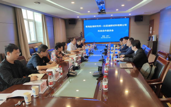 6月24日,比亚迪新材料有限公司董事长兼总经理刘伟华一行到青海盐湖所开展需求对接。青海盐湖所主持工作的副所长郑诗礼,党委副书记、副所长王建萍,科技处、相关研究单元负责人和科研代表参加座谈。