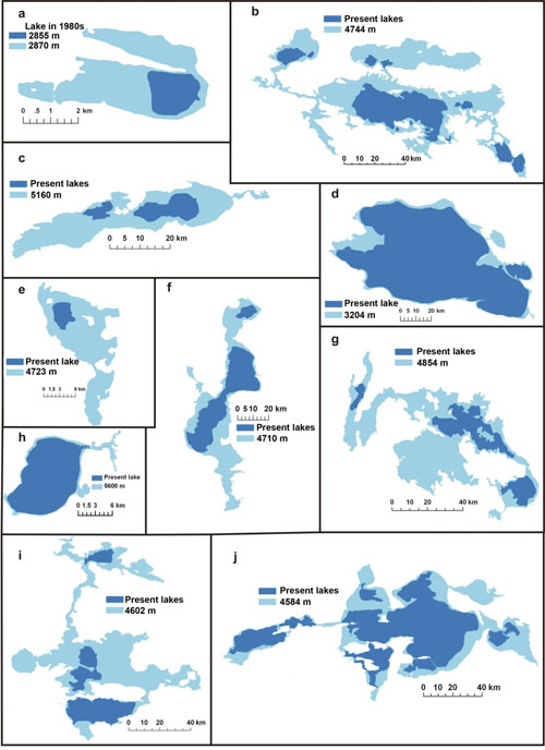 a达连海,b扎日南木错,c龙木错-松木希错,d青海湖,e错戳龙,f当惹雍错,g昂拉仁错,h令戈错,i拉果错,j色林错