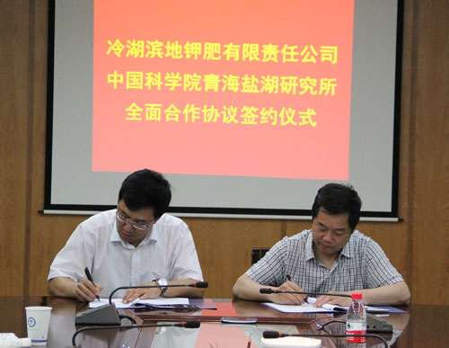 6月7日,青海盐湖所与冷湖滨地钾肥有限责任公司签订全面合作协议。双方就大盐滩盐湖资源综合利用中的盐湖卤水矿及固体矿资源核查资料及动态观测、钾肥生产技术服务、大盐滩杂卤石资源制取钾肥工艺研究及产业化技术研发、生产高附加值低钠盐和各种功能保健盐、芒硝和氯化镁的综合利用以及光热发电储能材料的研究等方面合作达成了共识。