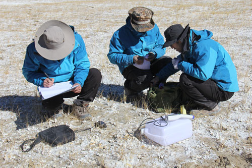 10月11日至11月8日,青海盐湖所国家科技基础性工作专项“中国盐湖资源变化调查”课题组主要成员一行8人在课题负责人马海州研究员的带领下,对西藏盐湖资源进行了野外调查取样工作,完成了2013年项目预定目标。