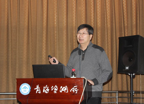 之后,中国科学院盐湖资源与化学重点实验室副主任李武研究员作报告,介绍了院重点实验室的基本概况。接着,赖忠平研究员做了地学方面的研究报告,介绍了青海盐湖所地学基础前沿的工作。