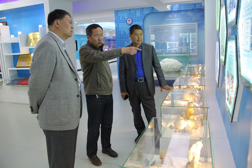 曹大岭一行参观了青海盐湖所的盐湖化学分析测试部和科技展厅,对青海盐湖所拥有的现代化大型分析仪器以及青海盐湖所的历史沿革、科研平台、人才队伍、科技成果和正在承担的重要科研项目等进行了深入了解。
