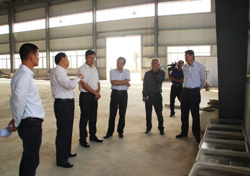 参观板材生产线和新型海工镁水泥试验场地