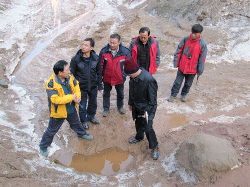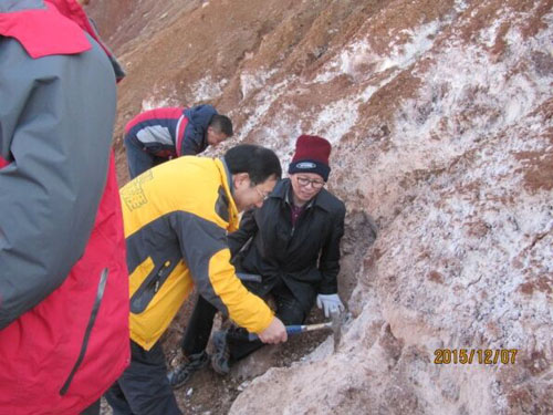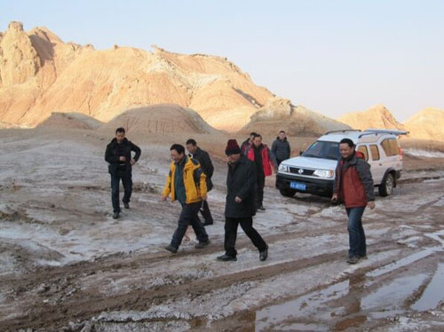 12月7日,中科建设开发总公司董升炬书记一行3人,在新疆三和源矿业有限公司总经理陶永才、青海盐湖所研究员山发寿等人员的陪同下,对新疆拜城钾盐矿区进行了野外考察。