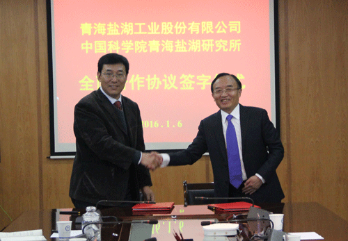 1月6日,青海盐湖所与青海盐湖工业股份有限公司在西宁签署全面合作协议,双方合作进入新的历史时期。青海盐湖所主持工作的副所长段东平和青海盐湖工业股份有限公司董事长、党委书记王兴富代表双方签署协议。青海盐湖工业股份有限公司技术部部长王石军、人力资源部部长曹俊清,青海盐湖所副所长吴志坚、部分中层干部和科研人员参加了交流座谈和签约仪式。