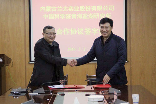 3月2日,青海盐湖所与内蒙古兰太实业股份有限公司在青海西宁签署全面合作协议。青海盐湖所主持工作的副所长段东平和内蒙古兰太实业股份有限公司副总经理兼正高级工程师胡开宝出席签字仪式。