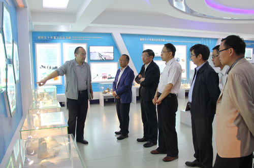 张雄伟、史培军一行首先在青海盐湖所主持工作的副所长吴志坚陪同下参观了盐湖科技展厅,对青海盐湖所的历史沿革、科研平台、人才队伍、科技成果等进行了深入了解。