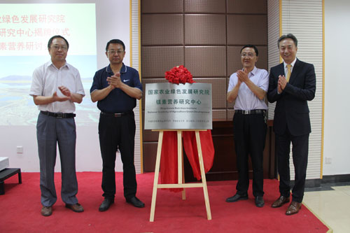 为了促进我国农业绿色创新领域健康发展,着力体现和提高各镁素企业、科研院校在镁素营养方面的最新成果,大力加强对镁素营养的认识,提升核心竞争力,7月24日,由中国农业大学资源与环境学院、营口菱镁化工集团有限公司、中国科学院青海盐湖研究所共同主办的国家农业绿色发展研究院镁素营养研究中心揭牌仪式在青海盐湖所举行。中国工程院张福锁院士、营口菱镁化工集团董事长张荣阳,青海省科学技术厅相关领导以及来自多所科研院校的相关代表出席了仪式。