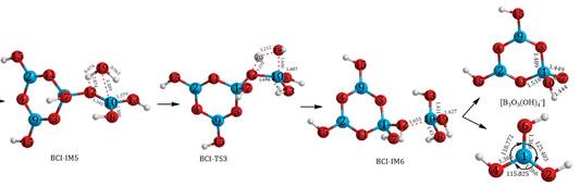 图:[B5O6(OH)4-]逐步水解途径示意图