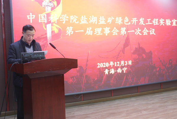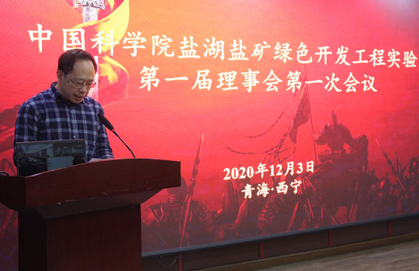 12月3日,中国科学院盐湖盐矿资源绿色开发工程实验室(以下简称“工程实验室”)第一届理事会第一次会议在西宁召开。中国科学院科技促进发展局副局长赵千钧,综合处处长周俊旭,资源环境处处长翟金良、副处长赵涛,综合处业务主管蒋文奇等主管部门负责人以视频方式出席会议。中国科学院西北生态环境资源研究院院长赖远明院士,中国科学院西北生态环境资源研究院副院长、青海盐湖所所长吴志坚,青海盐湖所党委书记、副所长王永晏,青海省工业和信息化厅原副厅长乔弘志、青海省科技厅原副厅长周卫星、青海金昆仑锂业有限公司总经理庞全世、西藏珠峰资源股份有限公司总地质师任小华、江苏艾特克阻燃材料有限公司总经理陈同、青海东台吉乃尔锂资源股份有限公司副总经理李健、青海盐湖所研究员李丽娟等理事会成员出席会议。工程实验室依托单位科研及管理部门相关人员参加会议。