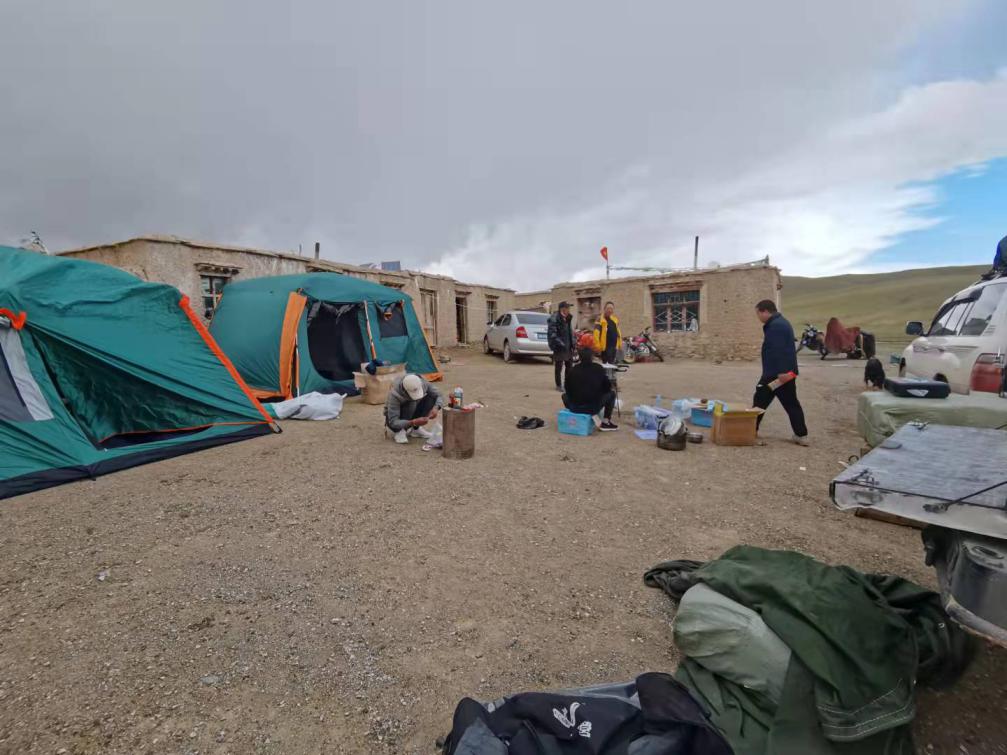 科考队员结束科考任务后在牧民院子中扎帐篷做饭