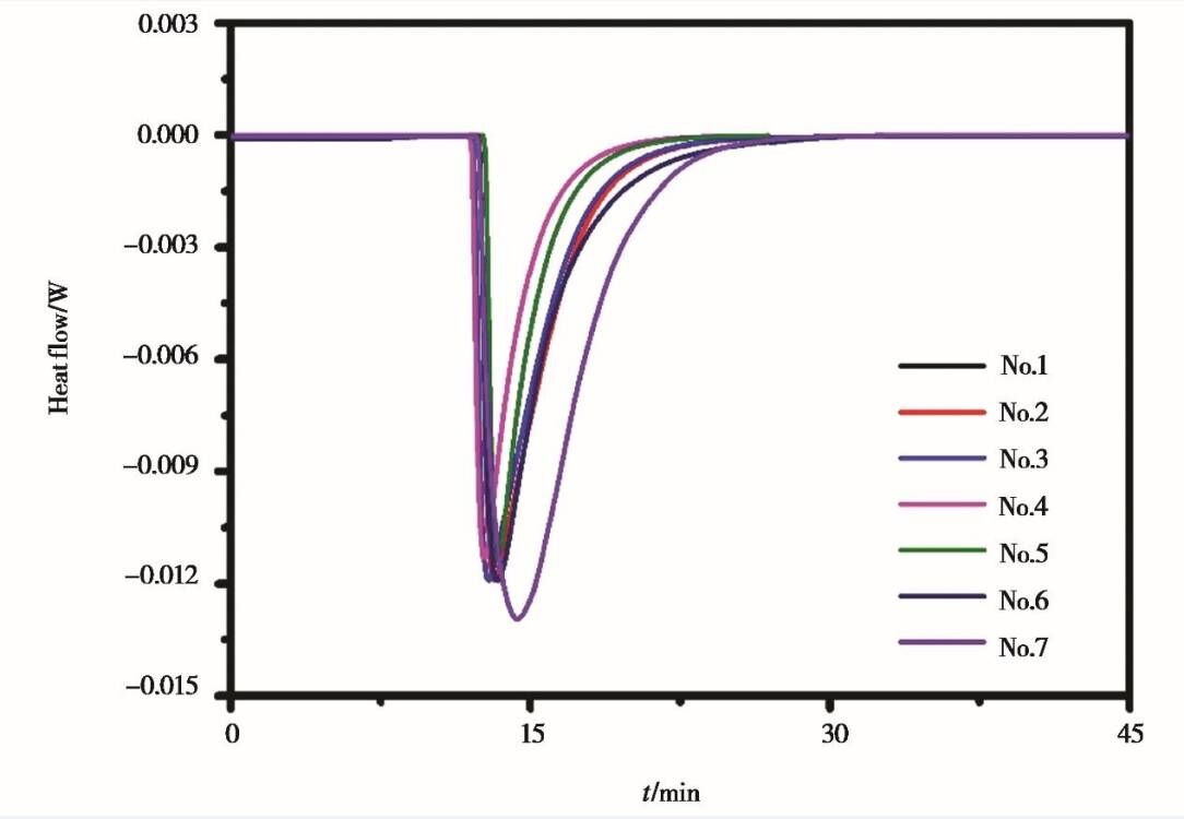 NaB5O8·5H2O的7个平行试验的溶解过程热流图
