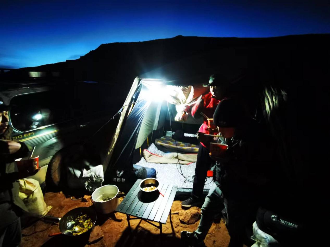 班戈湖考察完成后,我们就向着中国海拔最高的县城——双湖县进发,这也意味着羌塘无人区盐湖科考工作正式拉开帷幕。进入无人区的第一站是海拔近5000米的雅曲乡的雀儿茶卡。到达湖区时已近天黑,大家便寻找避风处安营扎寨。晚上,寒冷的天气即使待在帐篷里也不暖和,高海拔也让一些初上高原的队员感到不适,随处可见的野生动物则让人心怀不安……,这注定是一个难眠之夜。