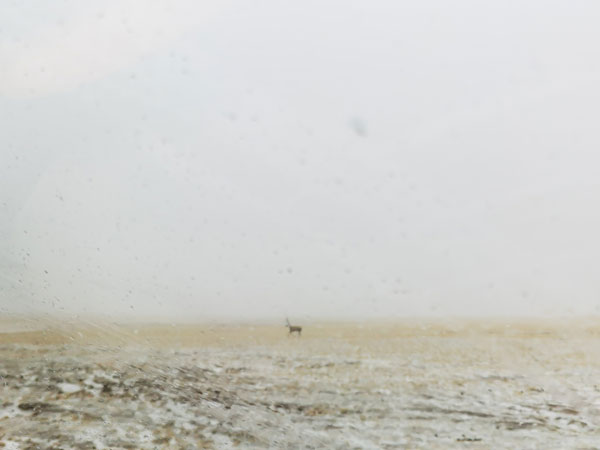 风雪中奔跑的藏羚羊
