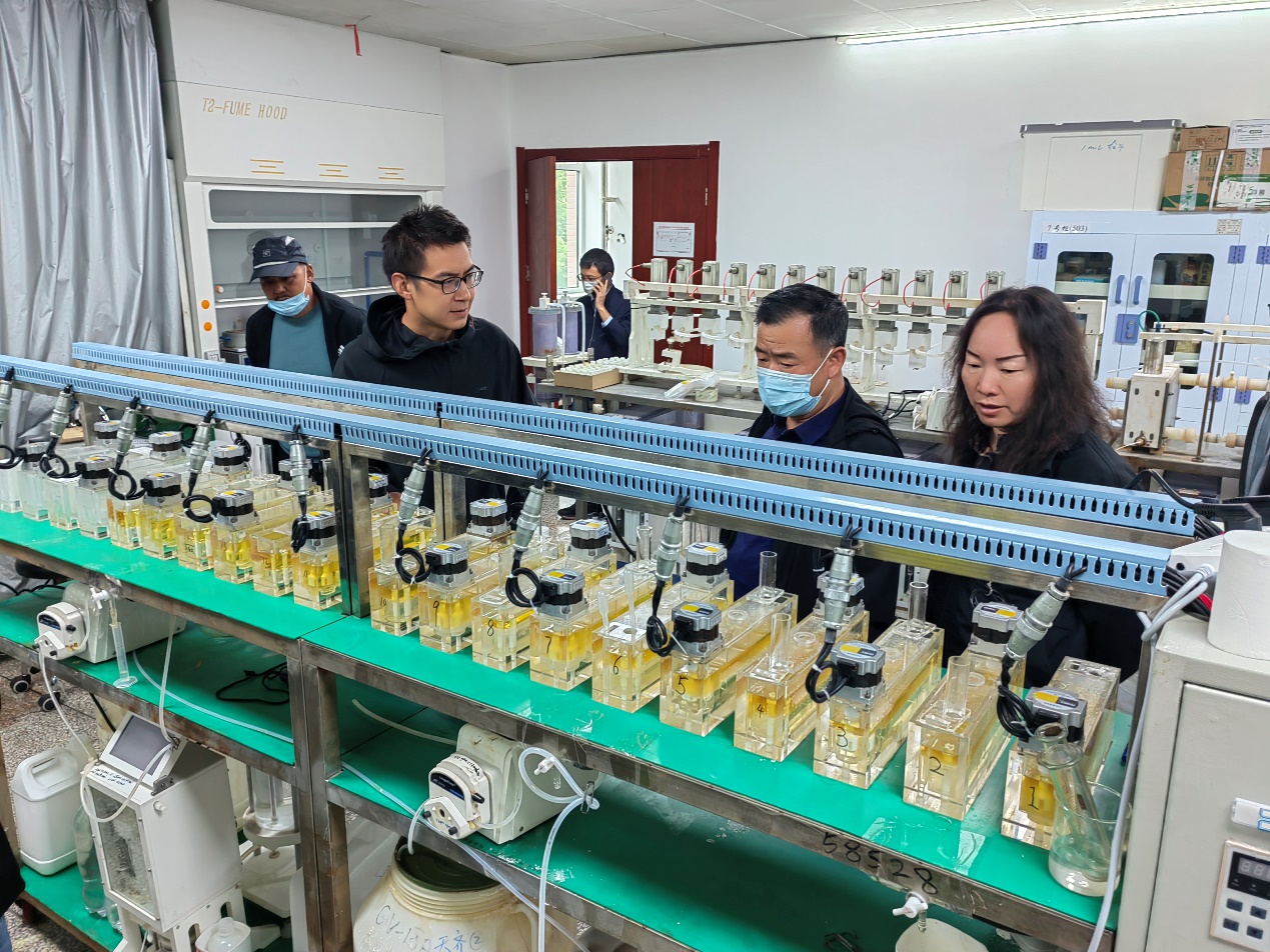 研究团队在大量的萃取体系筛选和工艺条件优化实验的基础上,提出了“萃取—洗涤纯化—反萃富集”的萃取分离铯盐完整工艺流程,并在混合澄清槽设备平台上开展了全流程工艺放大试验,经20余天连续运行,Cs的萃取率稳定在≥97%,同时实现了Rb的零损失,所得CsCl富集液纯度≥99.5%,通过强化过程和调控关键参数可获得纯度≥ 99.9%的高纯CsCl富集液。经过研究团队半年的技术攻关,已突破锂矿石伴生低品位铯资源高效分离提取的关键核心技术,受到了委托企业的肯定和高度评价。研究团队将凝智聚力持续技术攻关,以期在2022年底突破从提铯尾液中高效分离提取铷盐的关键核心技术,预期铷收率≥ 97%,所得铷盐产品纯度≥ 99%。